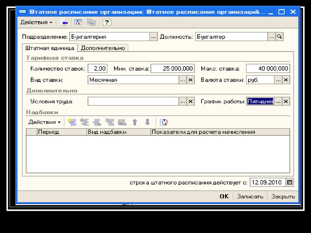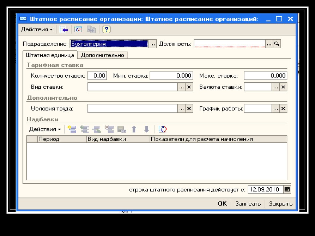 Настройка штатного расписанияШтатное расписание - внутренний документ предприятия,