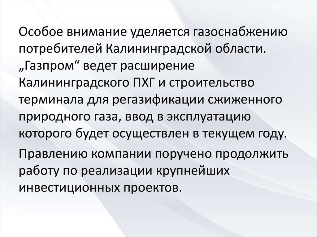 Особое внимание уделяется газоснабжениюпотребителей Калининградской области.