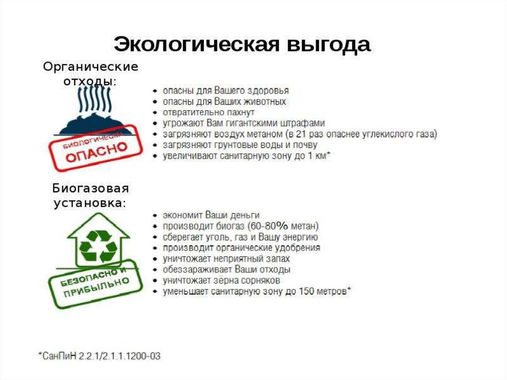 ЭкологияПроизводство биогаза позволяет предотвратить выбросы метана в атмосферу.