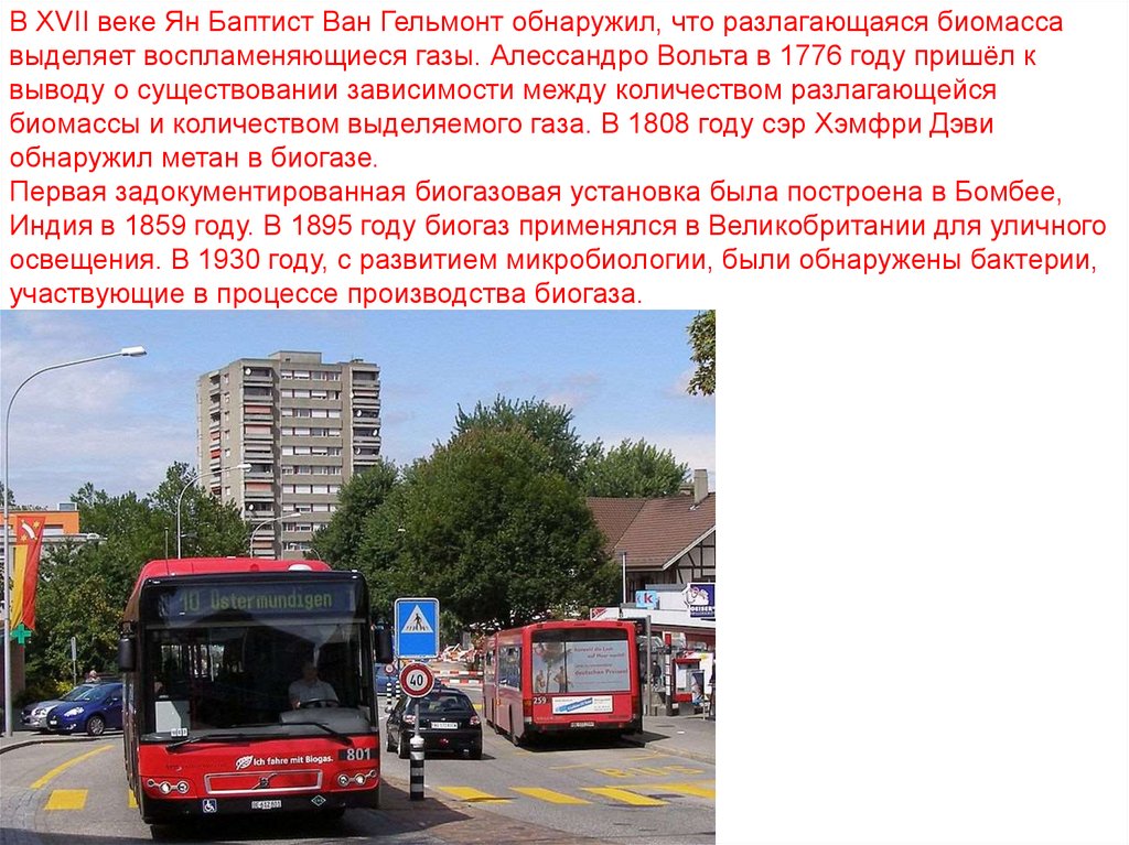 В XVII веке Ян Баптист Ван Гельмонт обнаружил, что разлагающаяся биомассавыделяет воспламеняющиеся газы. Алессандро Вольта в 1776 году пришёл к