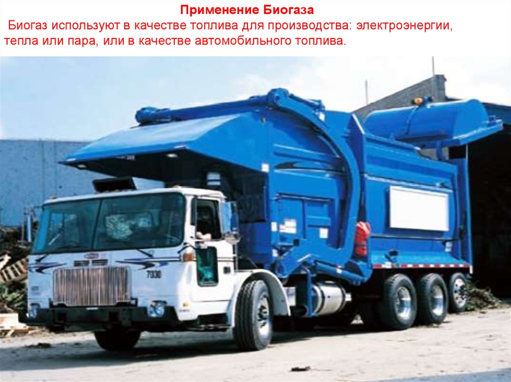 Применение БиогазаБиогаз используют в качестве топлива для производства: электроэнергии,