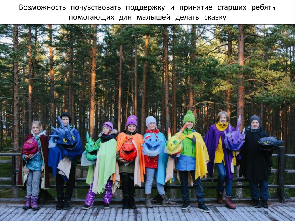 Возможность почувствовать поддержку и принятие старших ребят,помогающих для малышей делать сказку