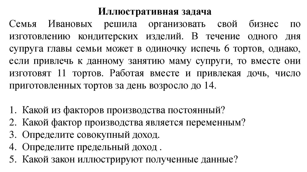 Иллюстративная задачаСемья Ивановых решила организовать свой бизнес по