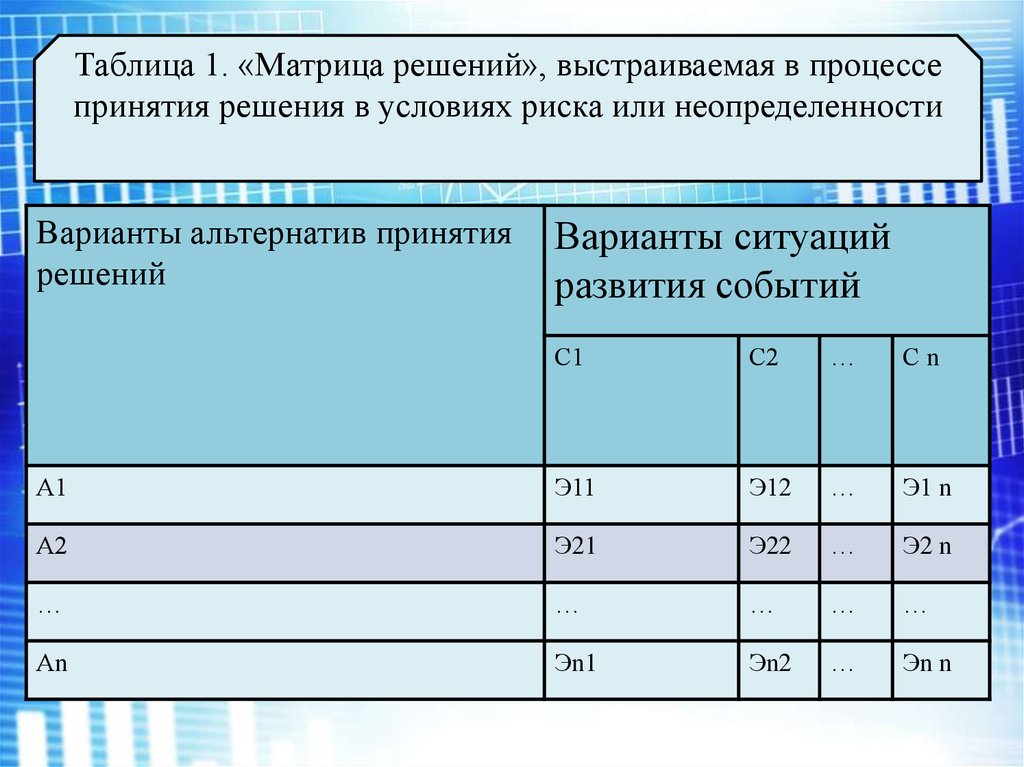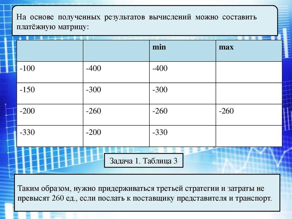 На основе полученных результатов вычислений можно составитьплатёжную матрицу: