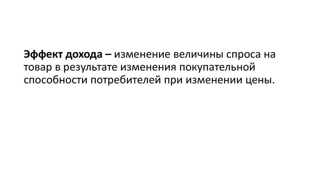 Эффект дохода – изменение величины спроса натовар в результате изменения покупательной