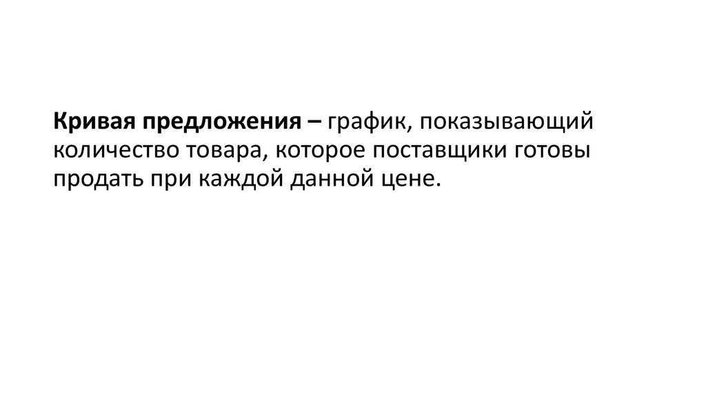 Кривая предложения – график, показывающийколичество товара, которое поставщики готовы