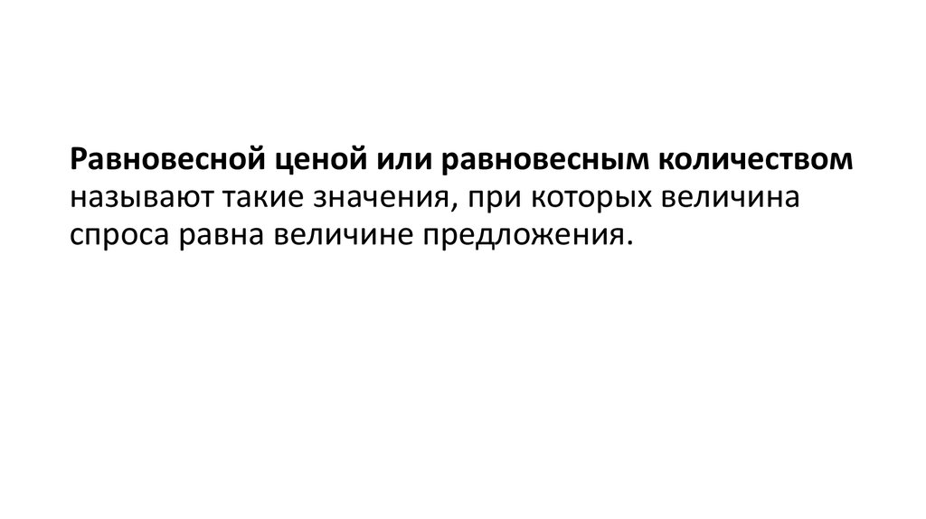 Равновесной ценой или равновесным количествомназывают такие значения, при которых величина