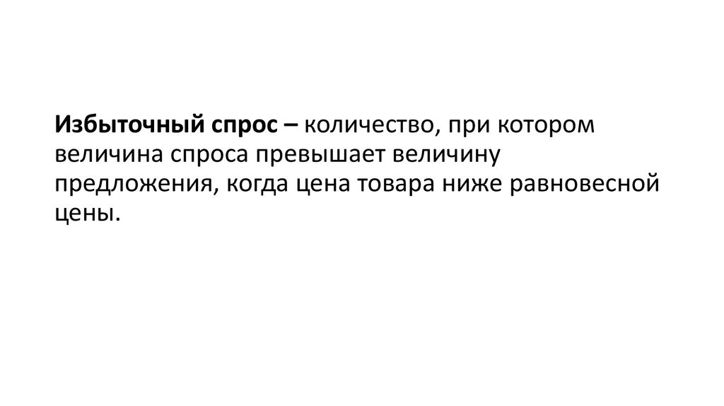 Избыточный спрос – количество, при которомвеличина спроса превышает величину