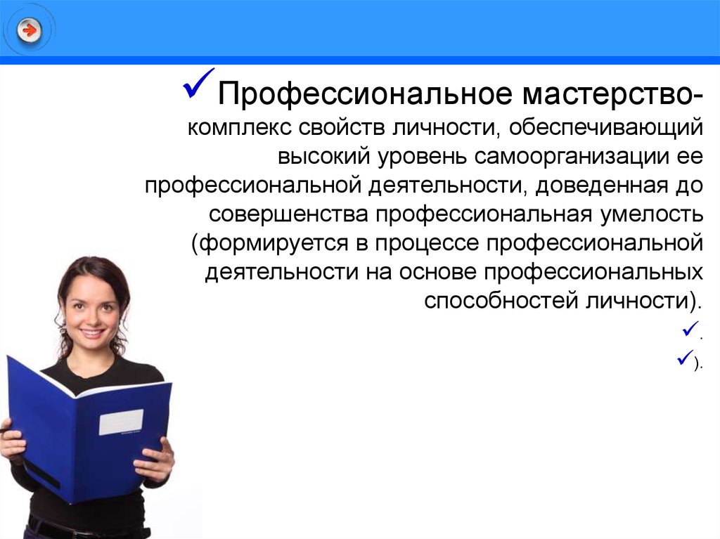 Профессиональное мастерство-комплекс свойств личности, обеспечивающий
