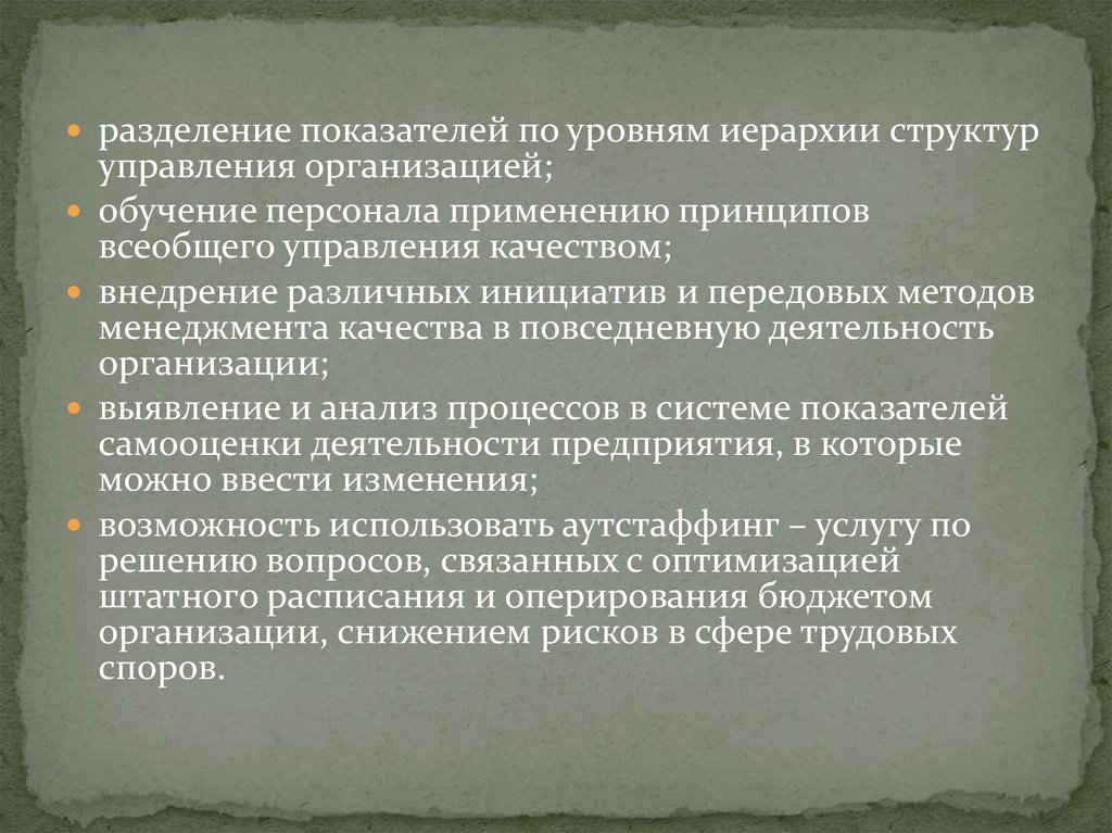 Организуя работу по самооценке, менеджмент