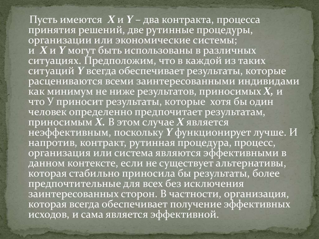 Пусть имеются X и Y – два контракта, процессапринятия решений, две рутинные процедуры,