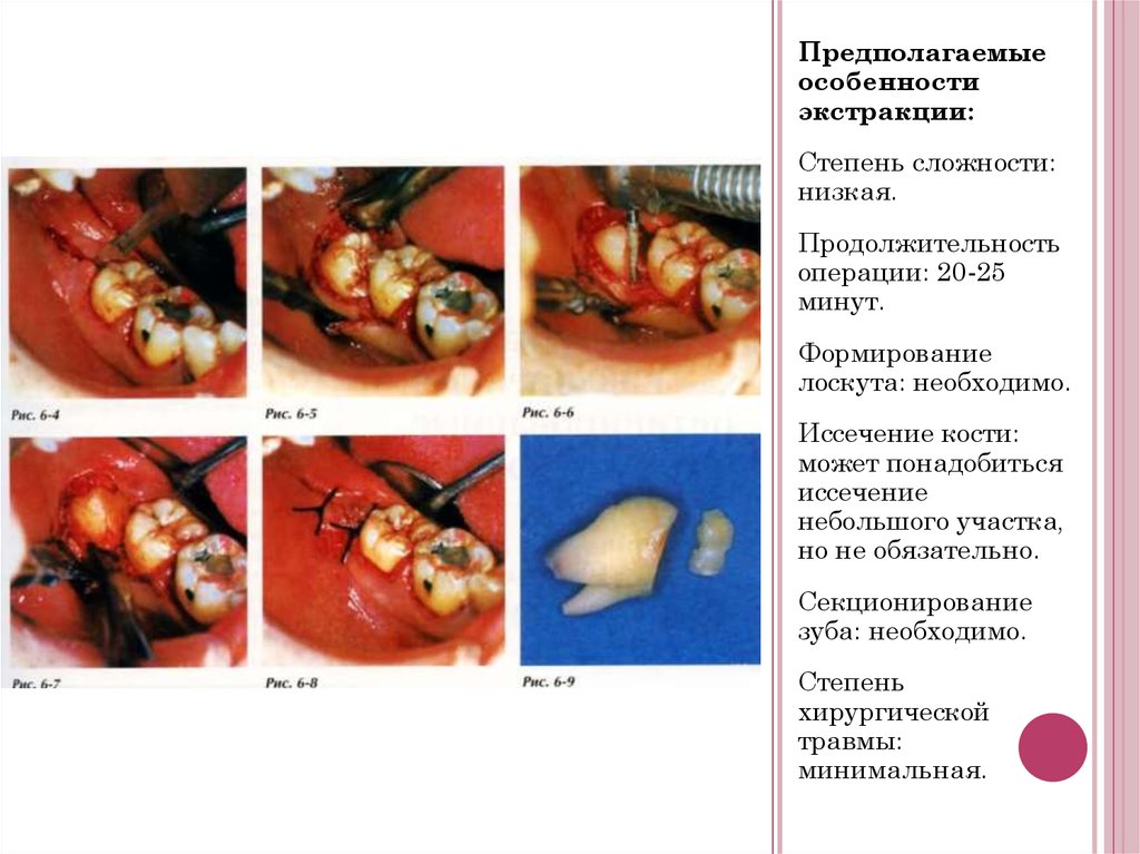 44. Сложная экстракция, требующая секционирования зуба на три части