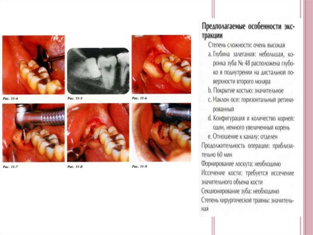 вмешательства важно отметить глубину расположения и наклон зуба,