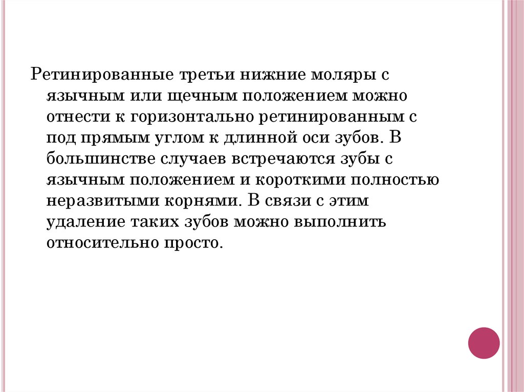 Ретинированные третьи нижние моляры сязычным или щечным положением можно