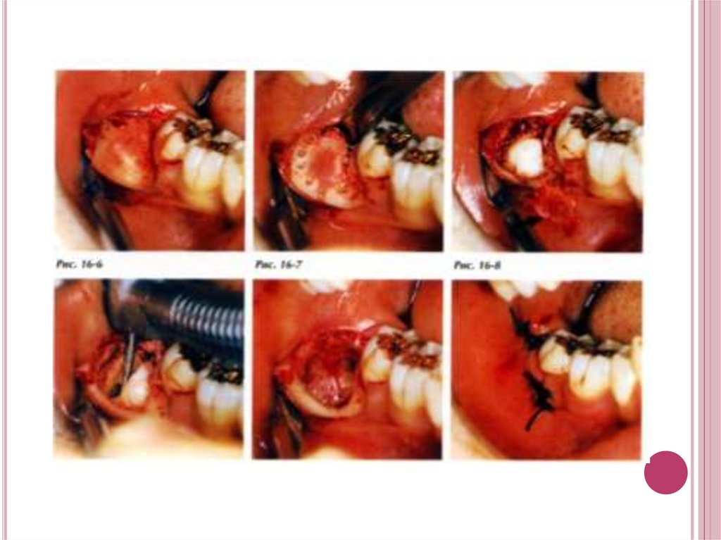 В области зуба 4.8 был сформирован и откинутслизисто-надкостничный лоскут. С помощью