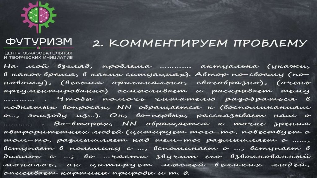 Шаблон сочинения по русскому языку. ЕГЭ-2018