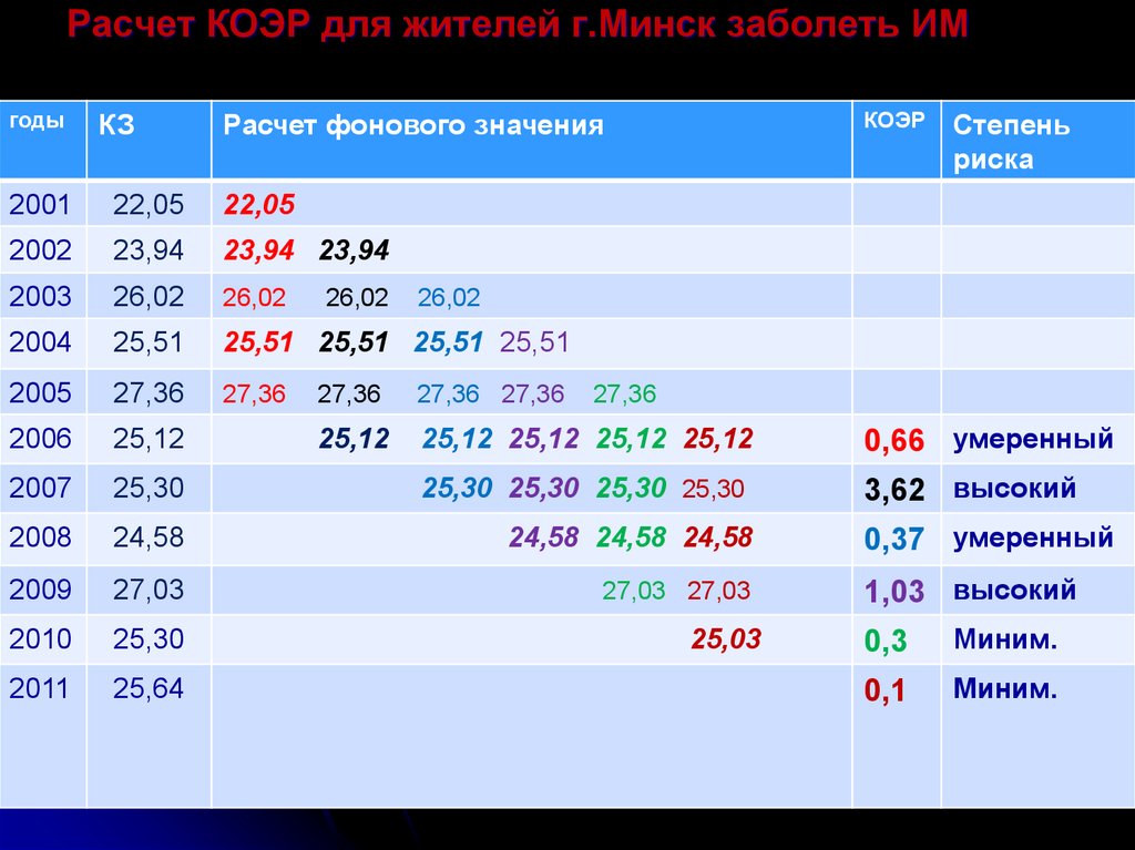 Расчет КОЭР для жителей г.Минск заболеть ИМгоды