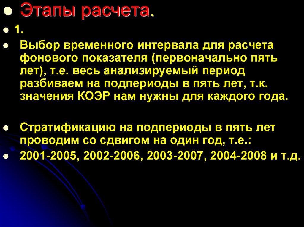 Выбор временного интервала для расчета фоновогопоказателя (рекомендуется пять лет).