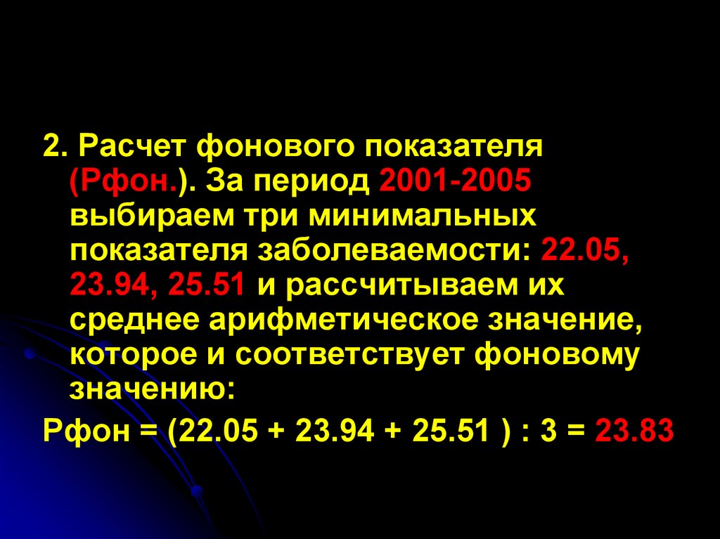 Расчет фонового показателя (Рфон.), который равен