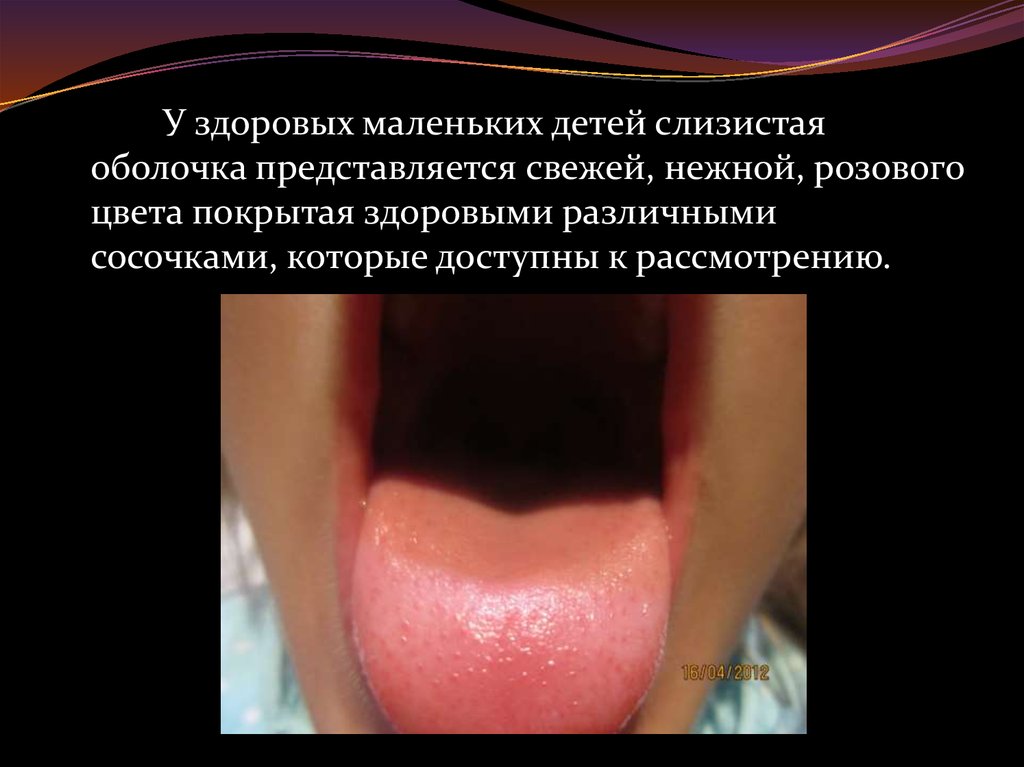 Вид слизистой оболочкиязыка ребенка любого возраста