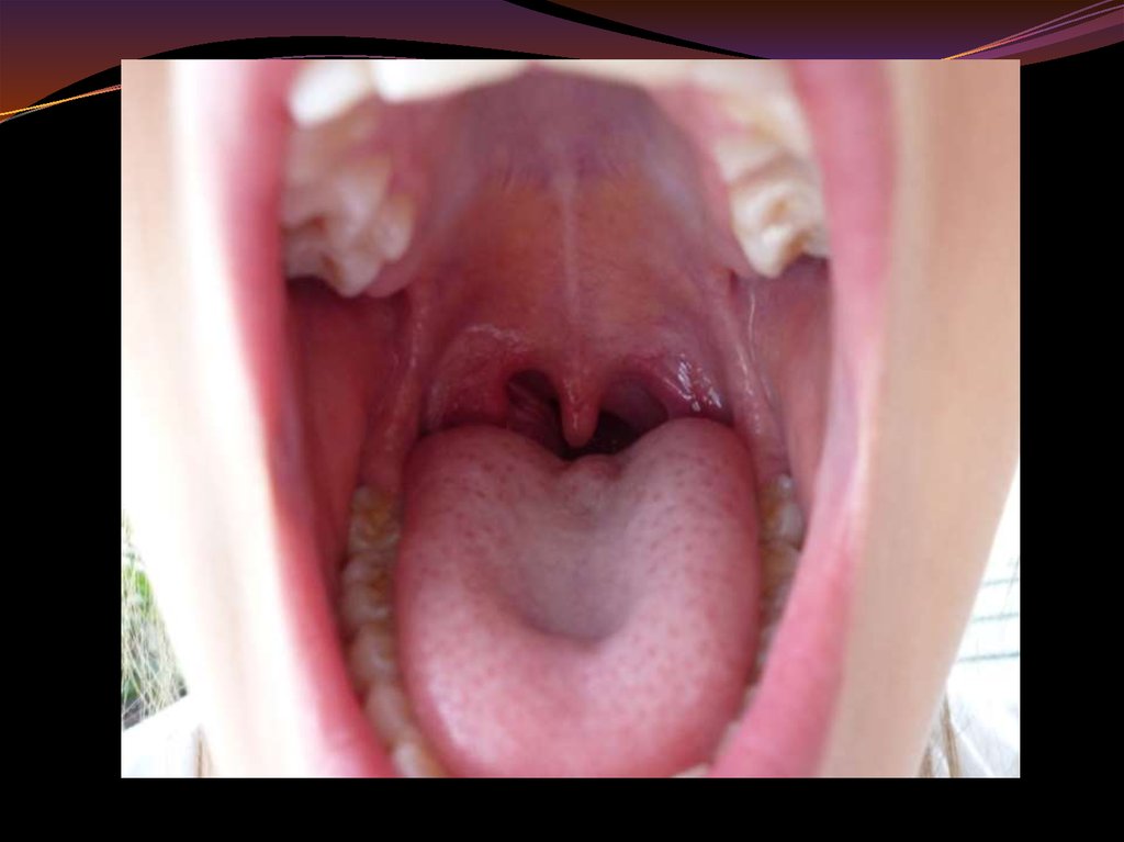 трещины на спинке языка, афты. Небный рефлекс