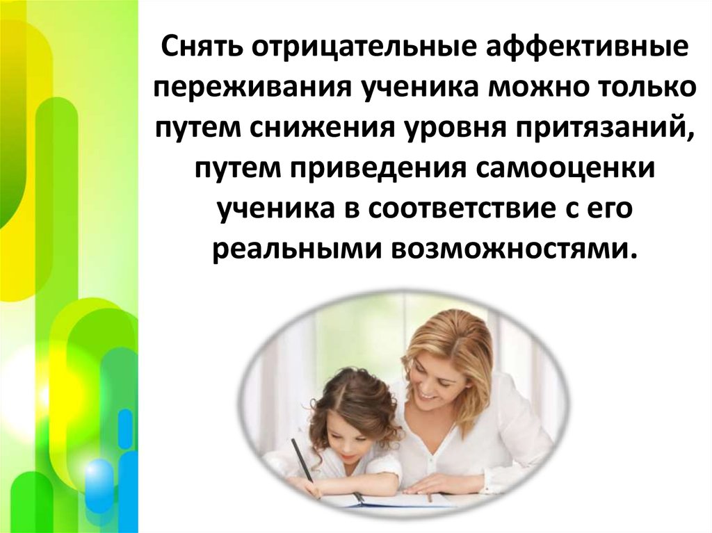 Снять отрицательные аффективныепереживания ученика можно только