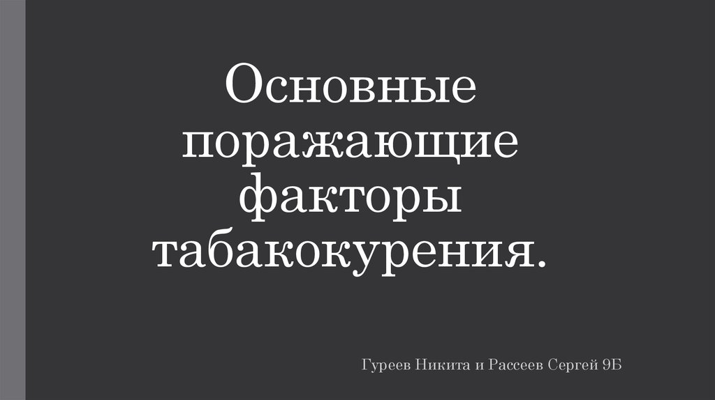 Основные поражающие факторы табакокурения.