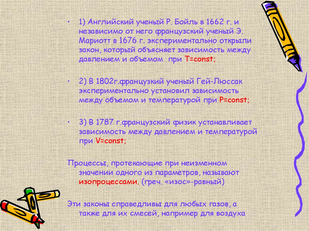 1) Английский ученый Р. Бойль в 1662 г. и