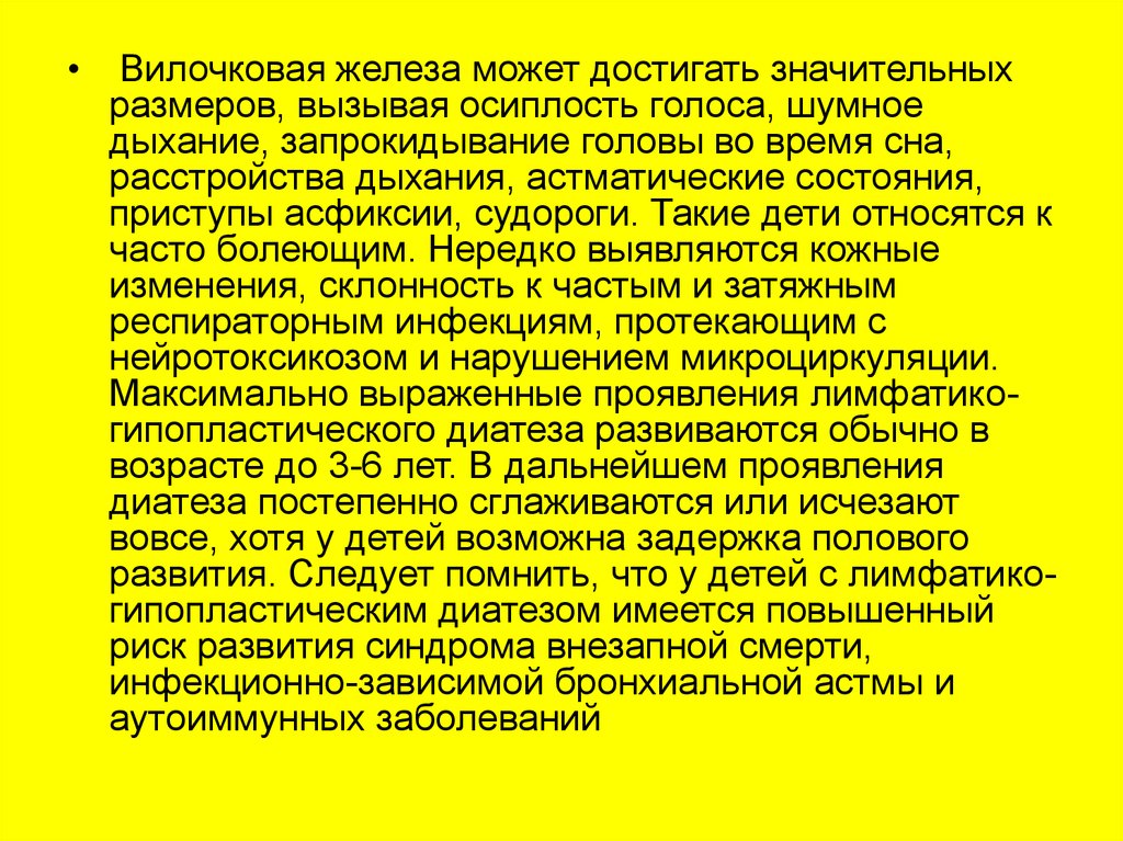 развития. Следует помнить, что у детей с лимфатикогипопластическим диатезом имеется повышенный