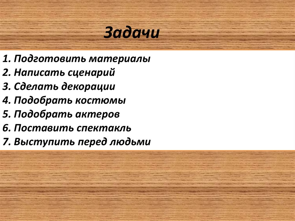 Задачи1. Подготовить материалы
