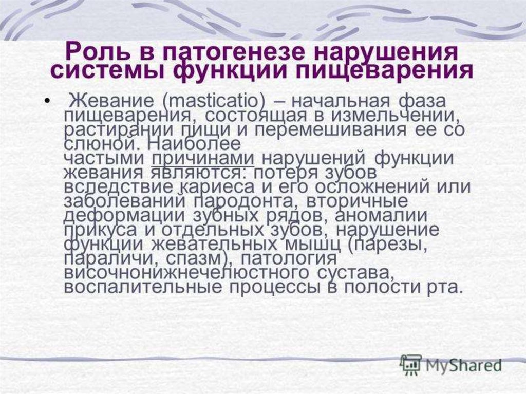 РОЛЬ В НАРУШЕНИИ ФУНКЦИИ СИСТЕМЫ ПИЩЕВАРЕНИЯ.