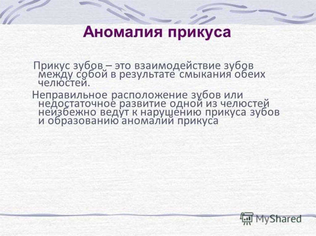 Аномалии прикуса. Этиология, патогенез, роль в нарушении функции системы пищеварения