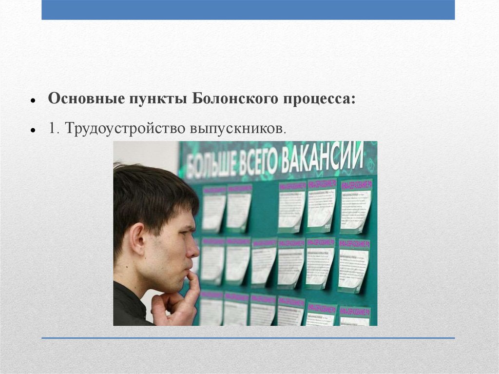 Основные пункты Болонского процесса:1. Трудоустройство выпускников.