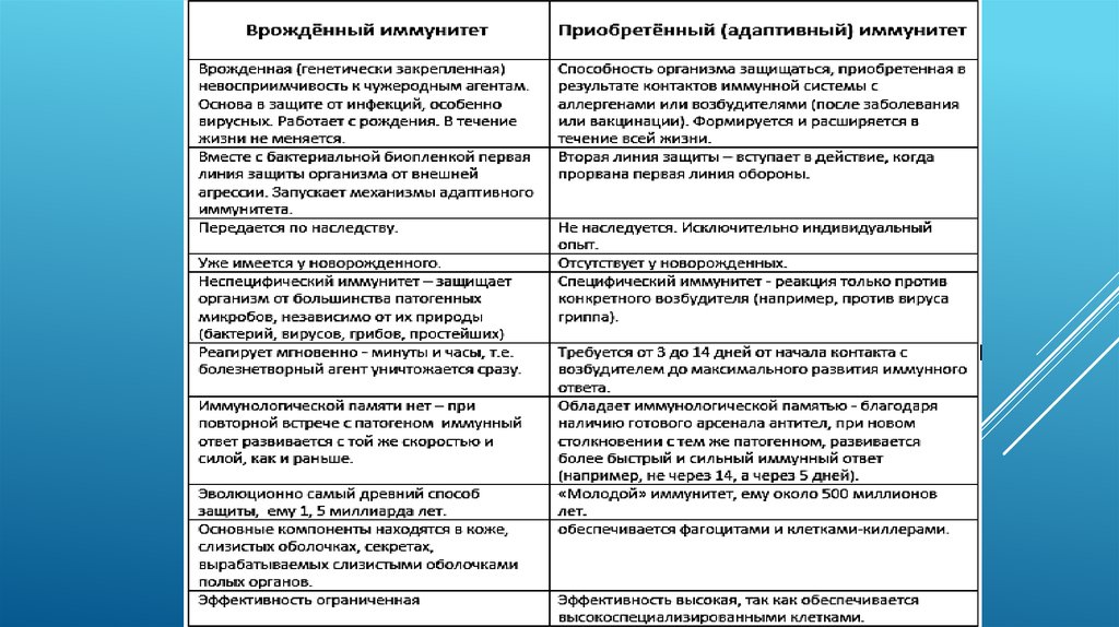 Что такое врожденный и приобретенный иммунитет?Главная цель обоих видов иммунитета – защита организма от болезней.