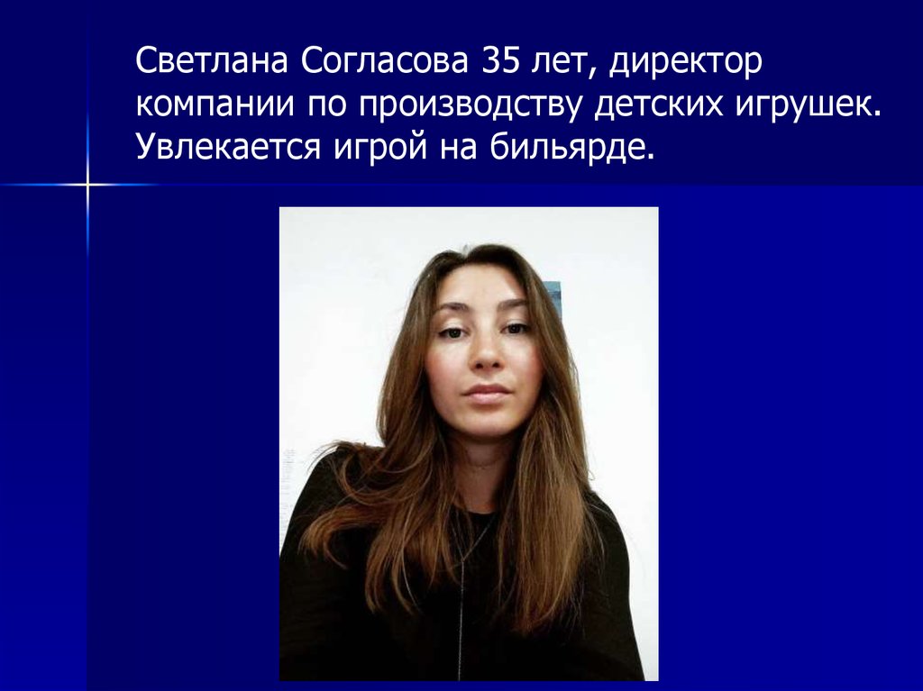 Светлана Согласова 35 лет, директоркомпании по производству детских игрушек.