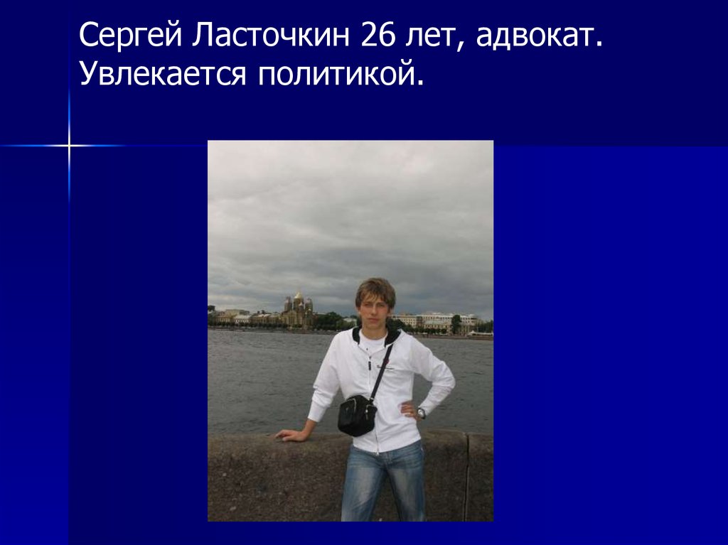 Сергей Ласточкин 26 лет, адвокат.Увлекается политикой.