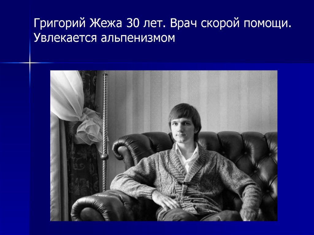 Григорий Жежа 30 лет. Врач скорой помощи.Увлекается альпенизмом