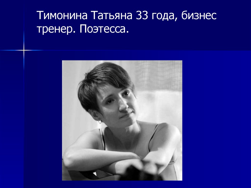 Тимонина Татьяна 33 года, бизнестренер. Поэтесса.