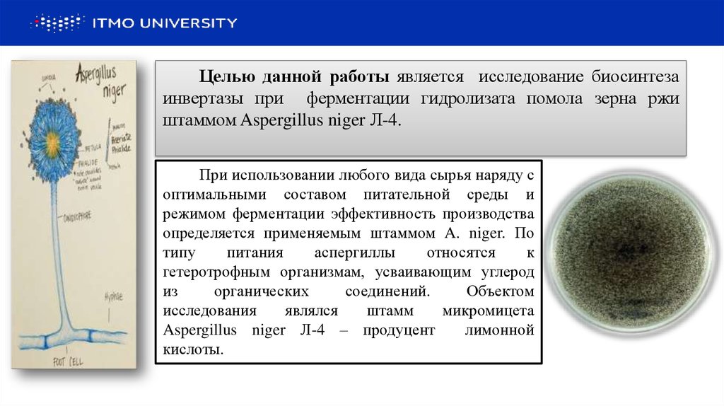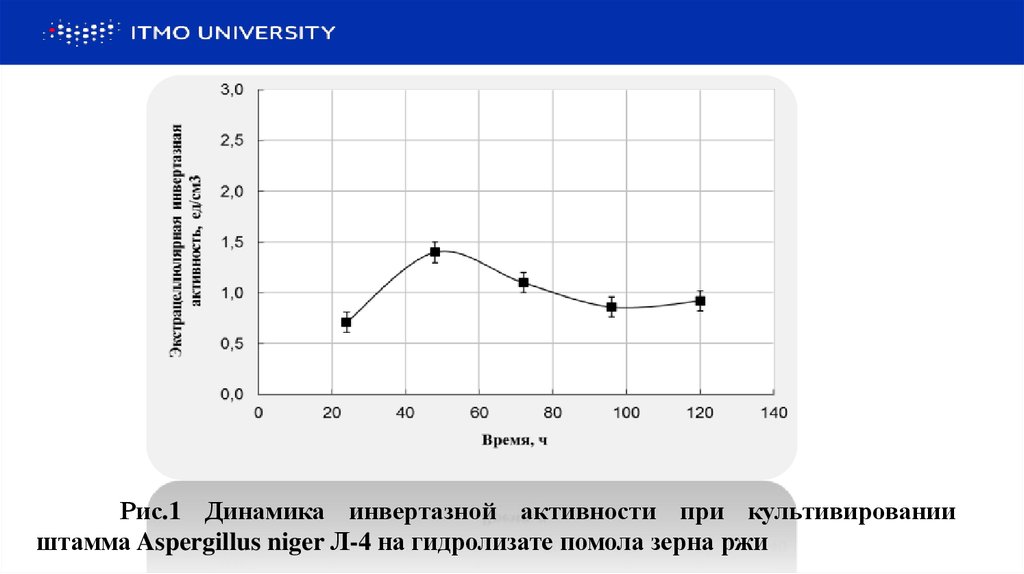 1. Исследование биосинтеза инвертазы при ферментации гидролизата помола зерна ржи штаммом Aspergillus niger Л-4