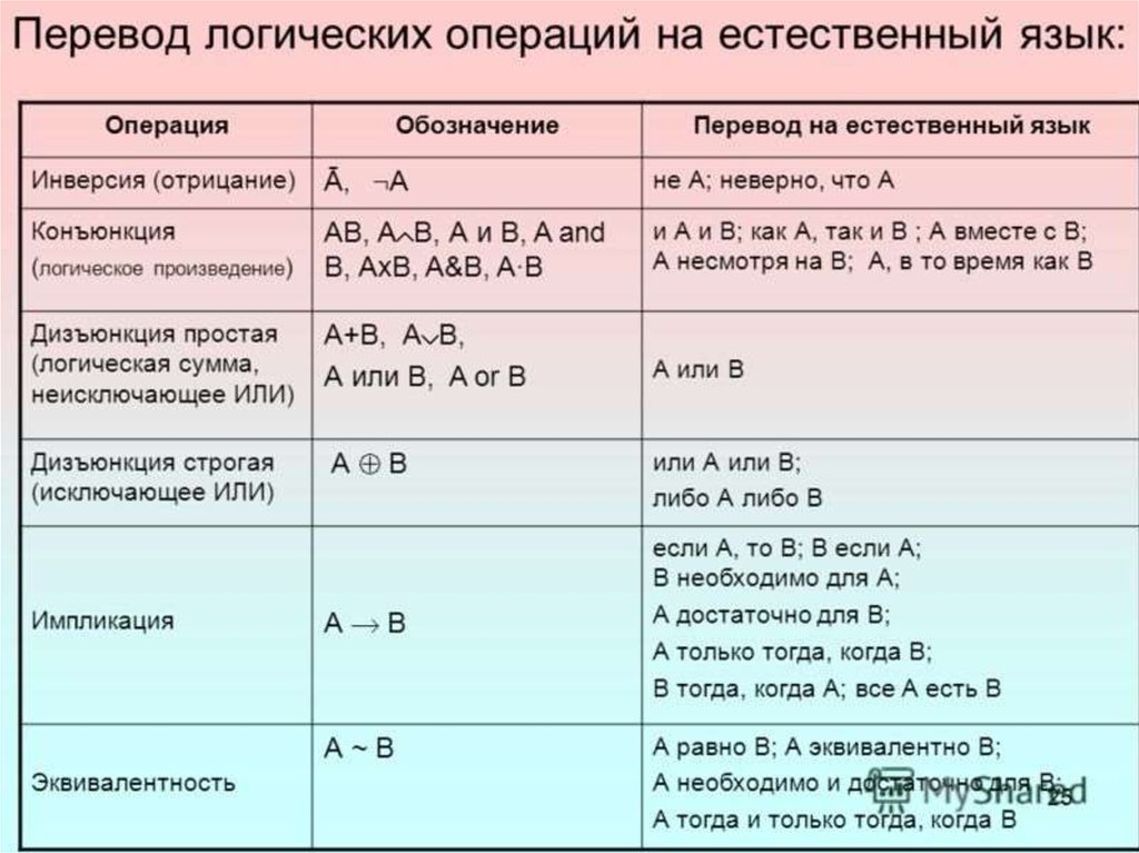 логических операций над ними.