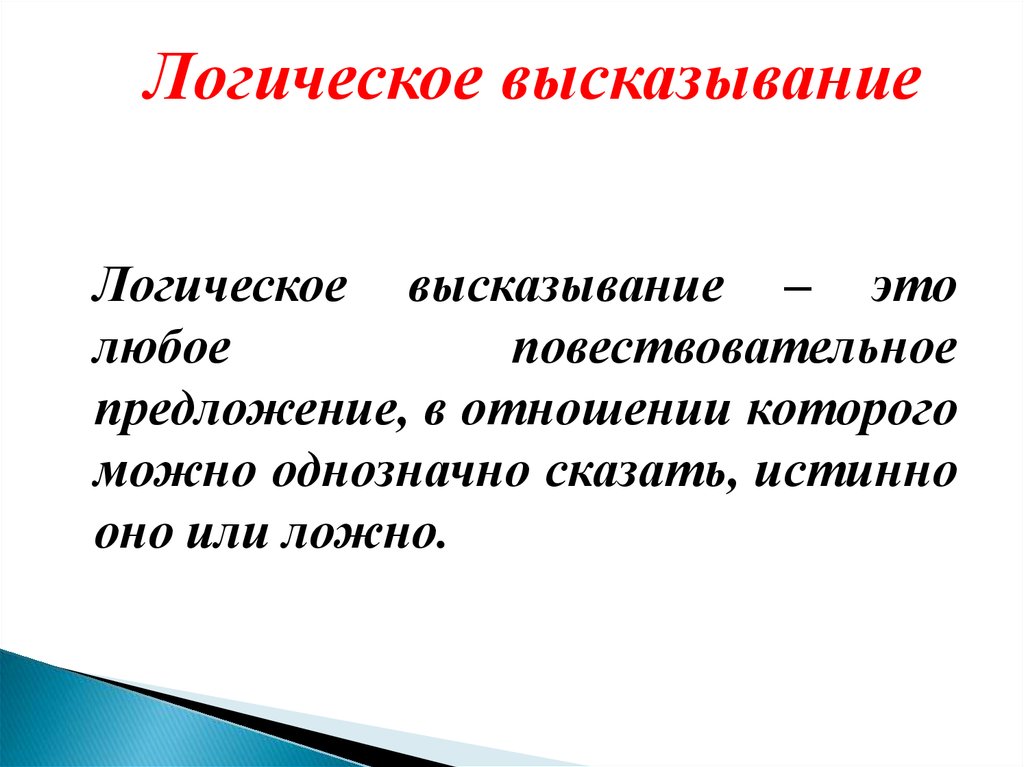 Логическое высказываниеЛогическое высказывание – это