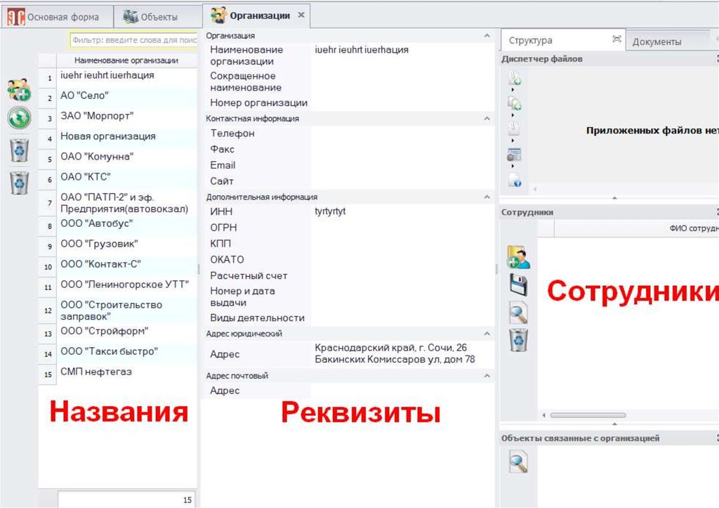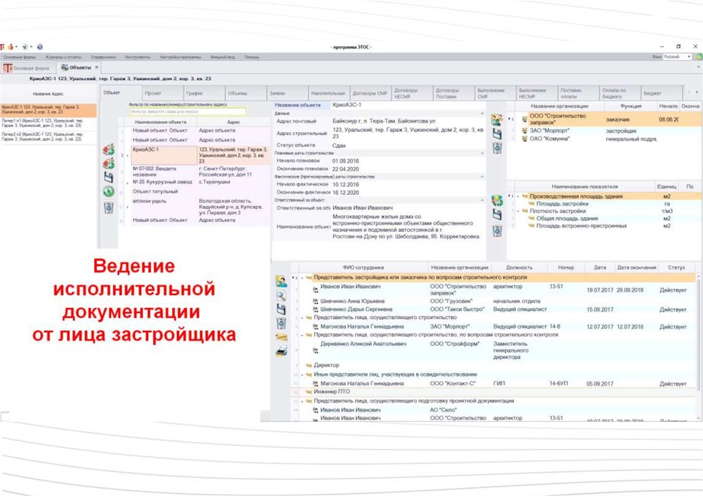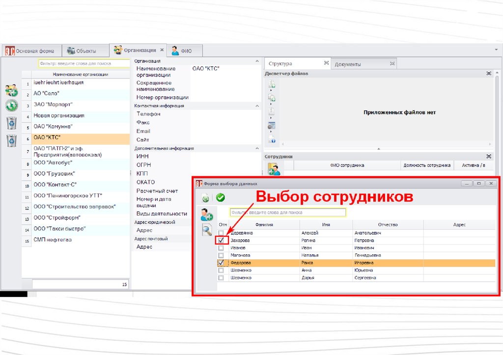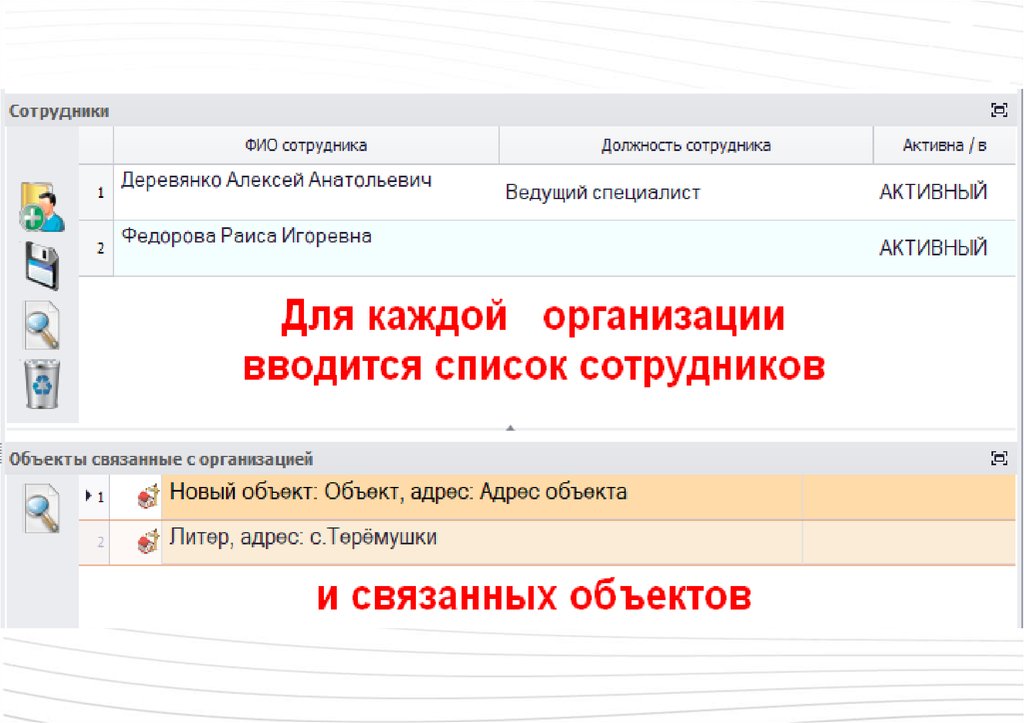 Сотрудники, указанные при описании объекта,попадают в список сотрудников в соответствующих