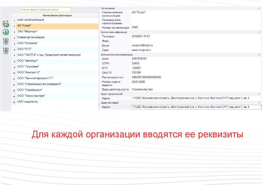 Для каждой организации вводятся ее реквизиты13.