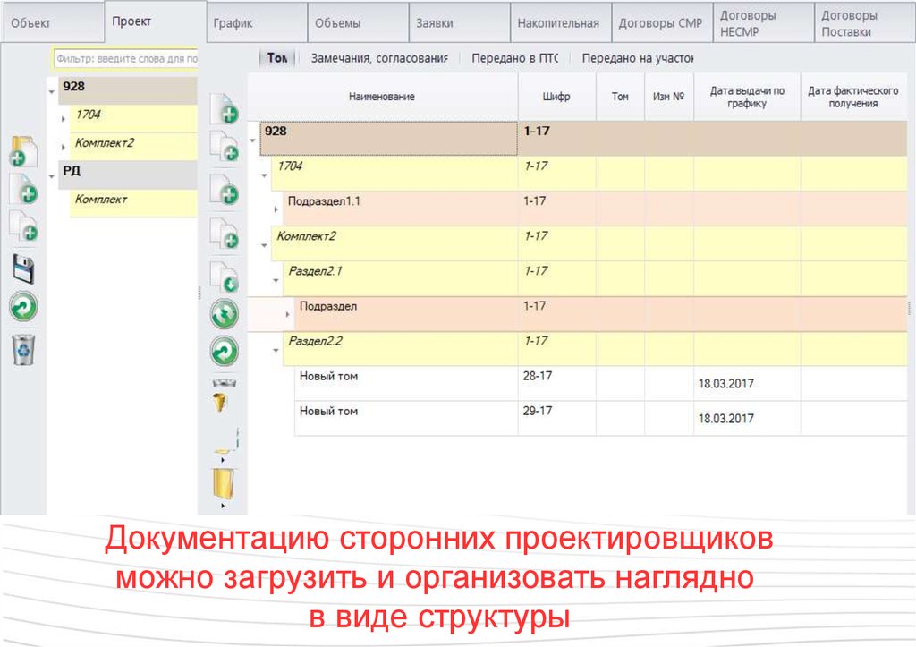 Документацию сторонних проектировщиковможно загрузить и организовать наглядно