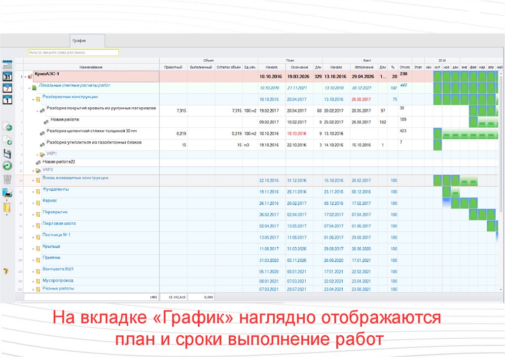 На вкладке «График» наглядно отображаютсяплан и сроки выполнение работ