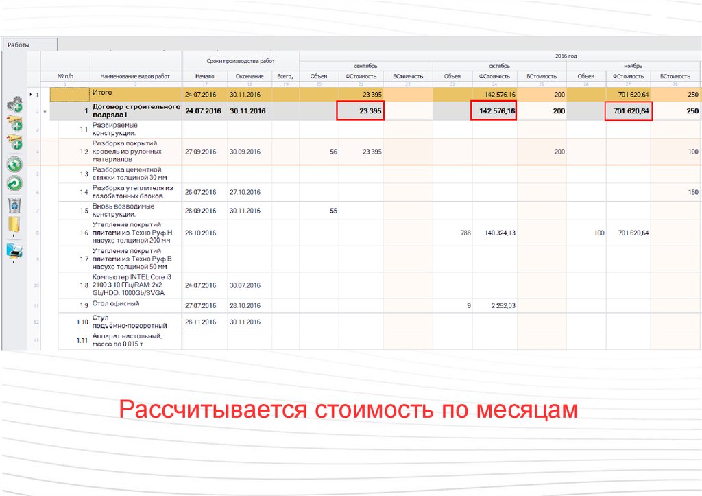 Рассчитывается стоимость по месяцам36.