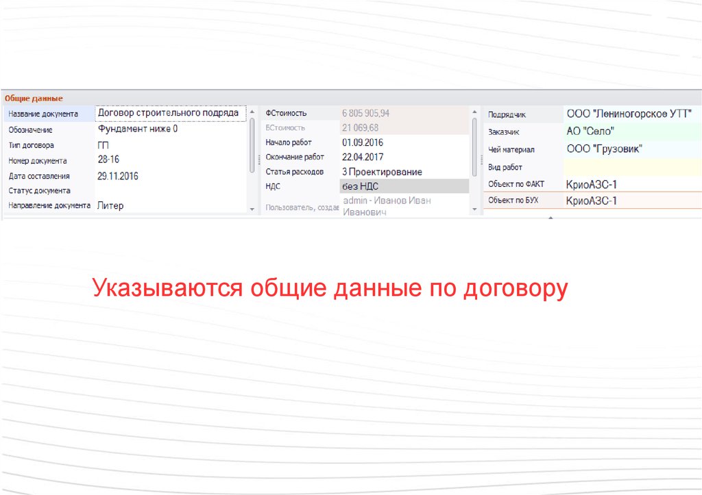 Указываются общие данные по договору37.