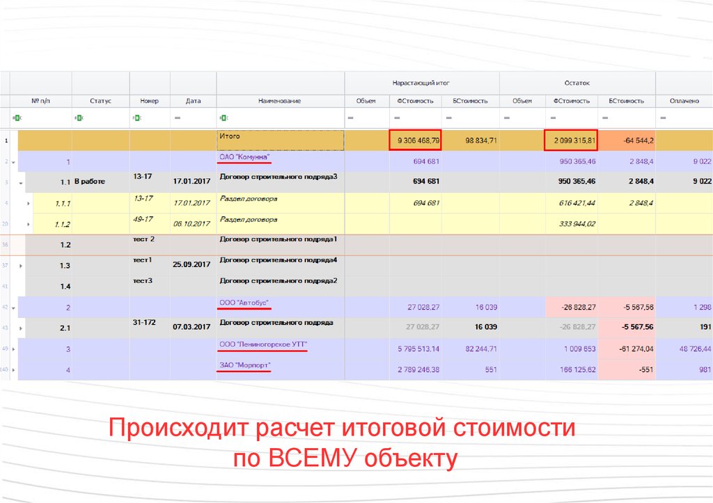 Происходит расчет итоговой стоимостипо ВСЕМУ объекту