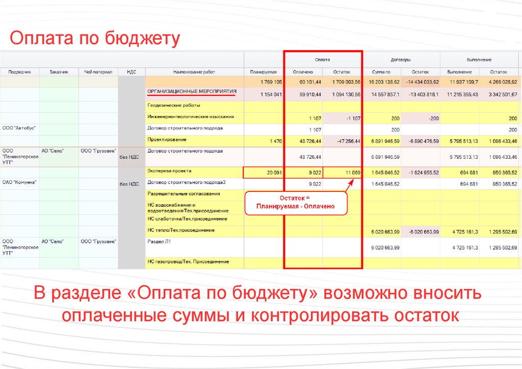 оплаченные суммы и контролировать остаток