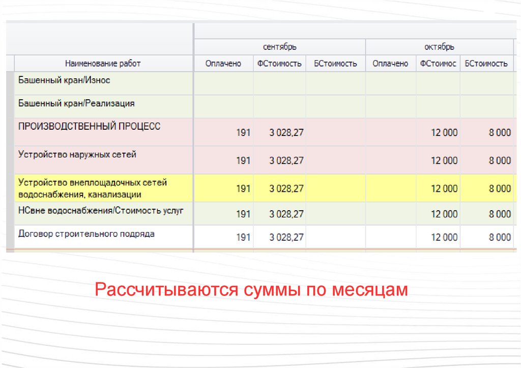 Рассчитываются суммы по месяцам51.